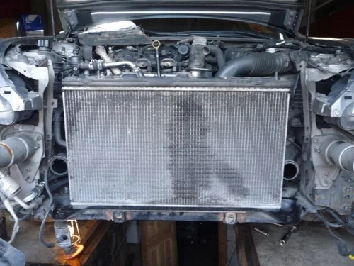 Сразу отсоединяем патрубки, после чего можно вытаскивать радиатор интеркулера.