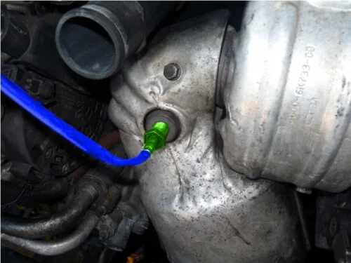 Начинаем откручивать гайку головкой №13 у самого основания катализатора.