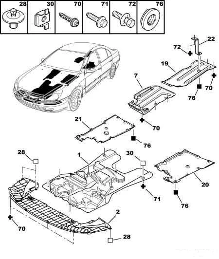 Схема крепежных элементов защиты двигателя.