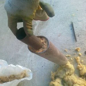 - Трубу с большим диаметром надевают на трубу с меньшим диаметром, а полость между ними набивают стекловатой (а лучше современной минеральной ватой с хорошими тепло- и звукоизоляционными характеристиками).