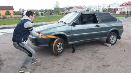 Чтобы завести машину с севшей АКБ с троса, понадобятся минимум 3 метра (лучше плоского буксировочного троса и чем дольше, тем лучше), домкрат (чтобы поднять авто с той стороны с которой будет наматываться) и ляо подстраховки упор под второе колесо.