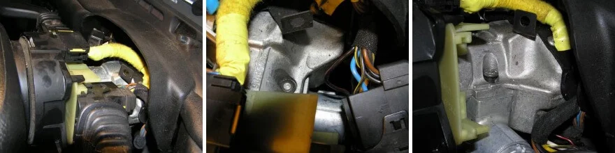 - Как было описано выше, необходимо отключить аккумулятор и снять внешний кожух с рулевой колонки. Однако сам замок можно не извлекать.
