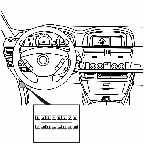 Диагностический разъём находится на стороне водителя, в пространстве для ног у стойки A.
