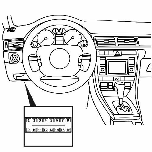 Диагностический разъём находится на нижнем краю панели приборов со стороны водителя.