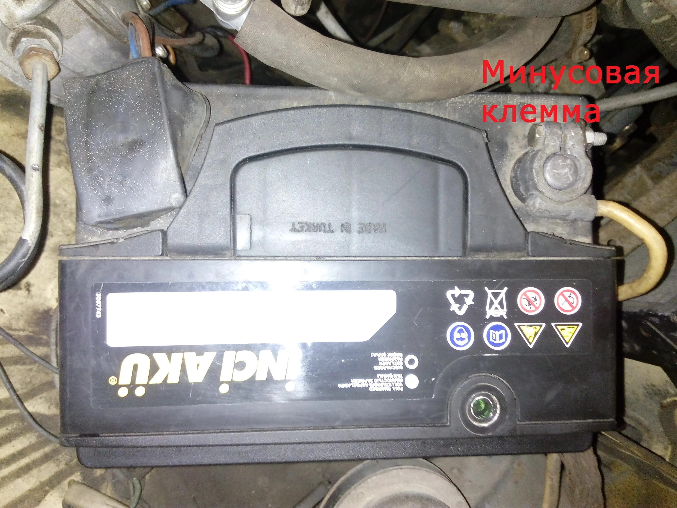 - Открыв капот снимаем минусовую клемму аккумулятора (рекомендуется делать каждый раз при проведении работ с электрикой автомобиля)