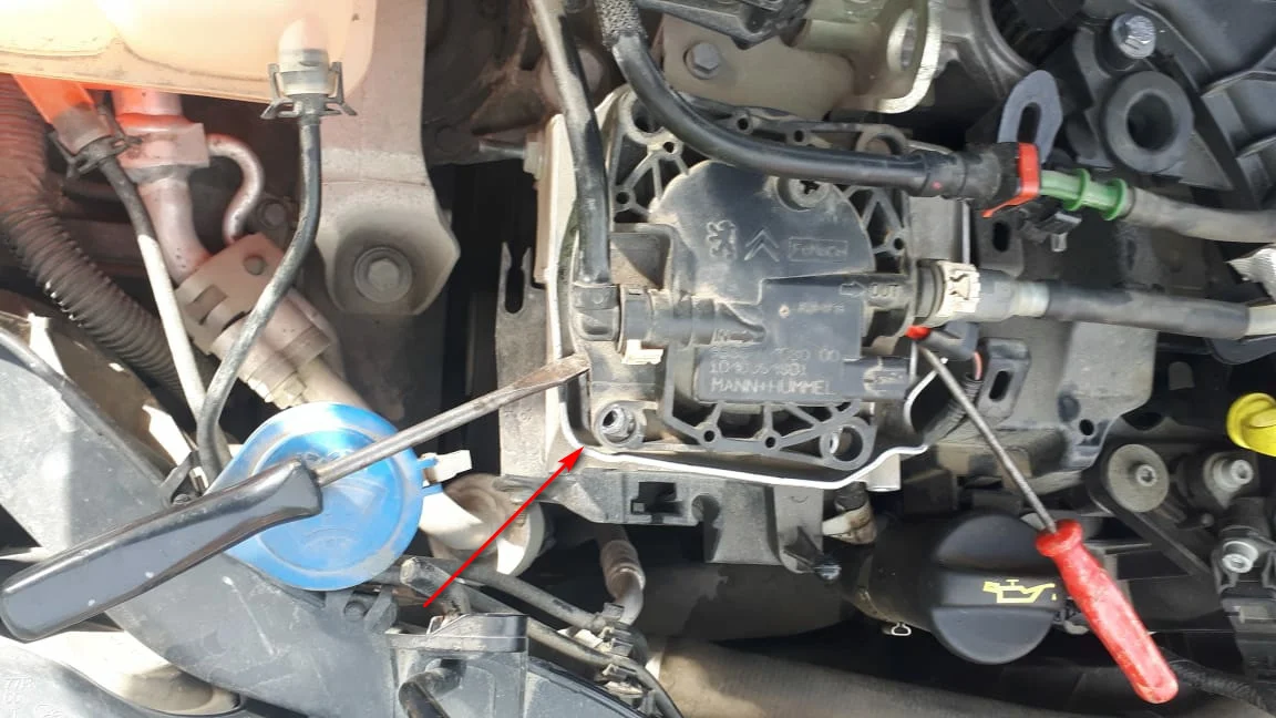 Топливный фильтр под капотом, установленный самостоятельно на Форд Фокус 3