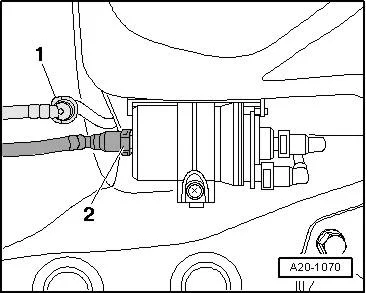 - Отсоединить вентиляционную магистраль -1- (белая) и топливную магистраль -2- (чёрная);
