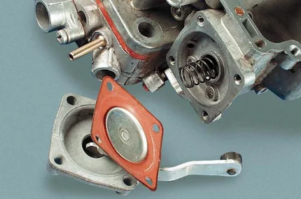 С помощью отвертки выкручиваем в крышке 4 винта. Отвинчиваем болт ключом на “8” и отсоединяем крышку. Вытаскиваем пружину, диафрагму и шток. После этого устанавливаем новую, все ставим в обратном порядке и настраиваем пусковое устройство.