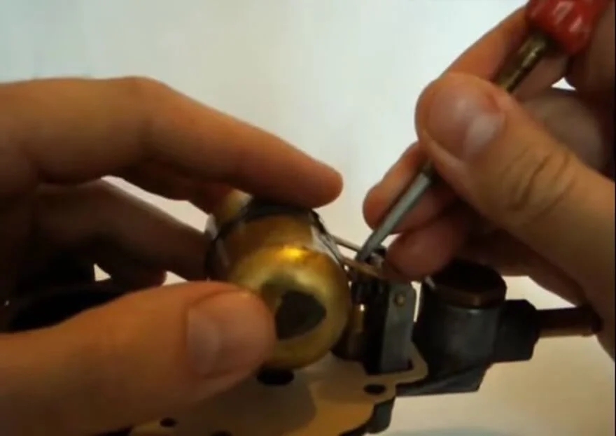 Затем необходимо отрегулировать открытие самого игольчатого клапана. Если поднять поплавок, топливо будет поступать в меньшем количестве.