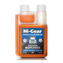 | Очиститель форсунок для дизеля Hi-Gear Diesel Plus with ER | Отличительной особенностью данного средства является наличие в его составе кондиционера металл с обозначением ER. Задача данного соединения заключается в повышении смазывающих свойств топлива, то есть, снижении трения, что приводит к увеличению ресурса трущихся деталей, в частности, насоса высокого давления. Данная присадка является чисто профилактической, и ее добавляют в топливный бак перед очередной заправкой. Производитель указывает, что профилактическую чистку данным средством нужно выполнять через каждые 3000 километров пробега автомобиля. С помощью присадки можно уменьшить расход топлива на 5...7%. | 237 мл; 474 мл. | 840 рублей; 1200 рублей. |