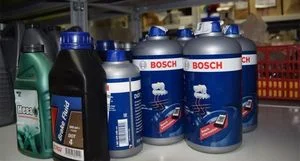 - DOT 3. Это наиболее старый класс, который еще можно найти в продаже. Жидкости сделаны на гликолевой основе. В соответствии со стандартом температура кипения «сухой» (без влаги) жидкости составляет не менее +205°С. А «влажной» (до 3,5% влаги) — не менее +140°С. Период замены жидкости такого класса составляет два года.