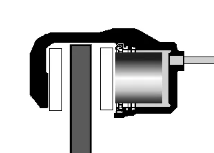 Итак, толщина накладки новой тормозной колодки составляет 12 мм. Автопроизводитель указывает, что минимально допустимый износ колодок на данной модели составляет 3 мм. Расстояние от края фрикционной накладки до чувствительного элемента датчика составляет 8,5 мм. Таким образом, датчик сработает, когда толщина накладки будет составлять порядка 3,5 мм. То есть, при загорании индикатора на панели выходит что уже нужно менять колодки, однако по сути какое то время можно еще поездить, но предельный износ не за горами и стоит планировать посещения сервиса или самому готовится к замене.