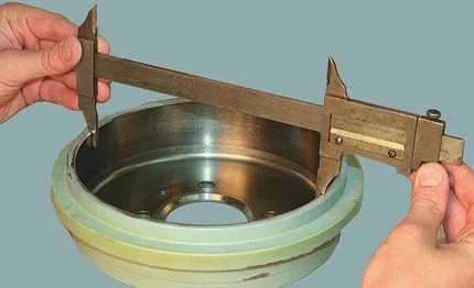 Что касается барабанных тормозных дисков, то у них по мере своего износа они не уменьшаются, а увеличиваются в своем внутреннем диаметре. Поэтому чтобы определить какой у них износ нужно проверять внутренний диаметр и смотреть, чтобы он не превышал допустимые нормы. Максимально допустимый рабочий диаметр тормозного барабана выштампован на его внутренней стороне. Как правило это 1-1,8 мм.