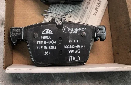 Изначально машина комплектовалась оригинальными колодками с номером VAG 3Q0698451C. Данные колодки изготавливались на основе специального материала GA 8135, а в 2020 году вышло предписание, что этот материал подвержен таким проблемам, как гул, царапины и преждевременный износ, поэтому задние колодки рекомендуется заменить на VAG 5G0698451 с материалом Ferodo, по цене 18900 руб.
