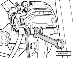 - Закрепить корпус тормозного суппорта при помощи новых самоконтрящихся болтов;