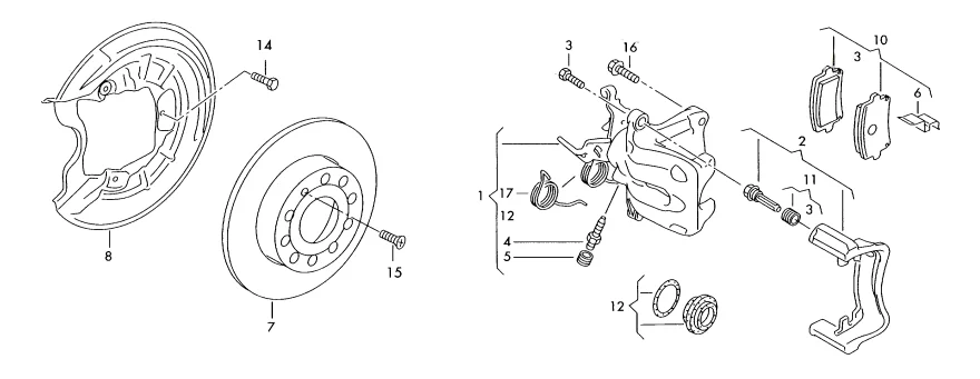 Из онлайн-каталогов следует, что все задние тормозные механизмы имеют одинаковое устройство, но различные размеры тормозных дисков. Тормозные колодки для всех трех кодов опций отличаются размерами и формами. Причем для кодов опций 1KD и 1KF так же предлагаются два варианта оригинальных колодок, но для 1KS/1KT — только один.