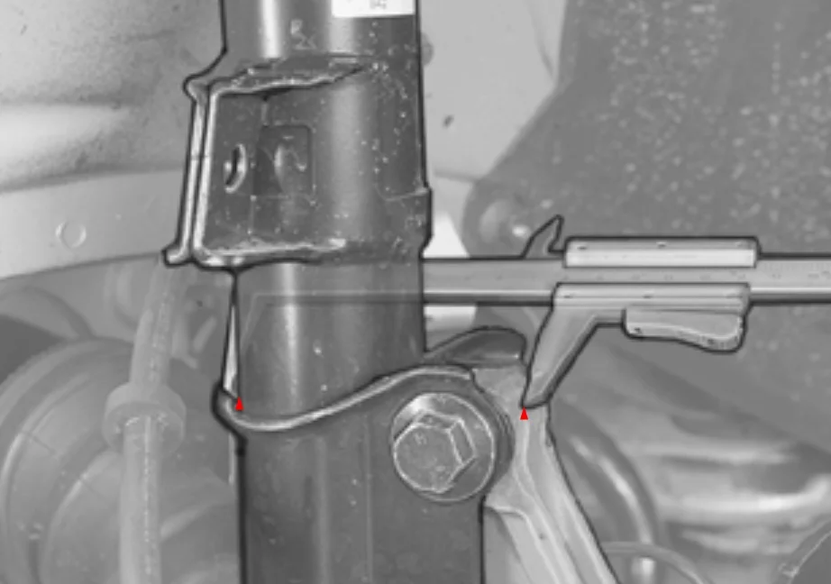 - Производим штангенциркулем замер как на фото. При сборке кулака к стойке нужно выставить этот размер.