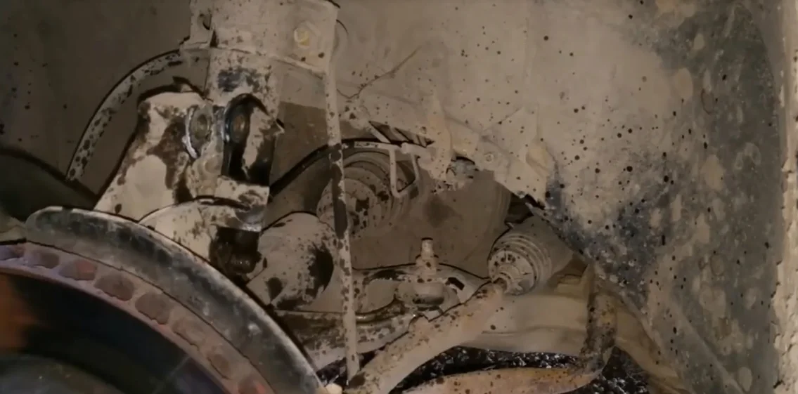 - Очищаем два болта крепежа стойки к кулаку и сбрызгиваем проникающей смазкой.