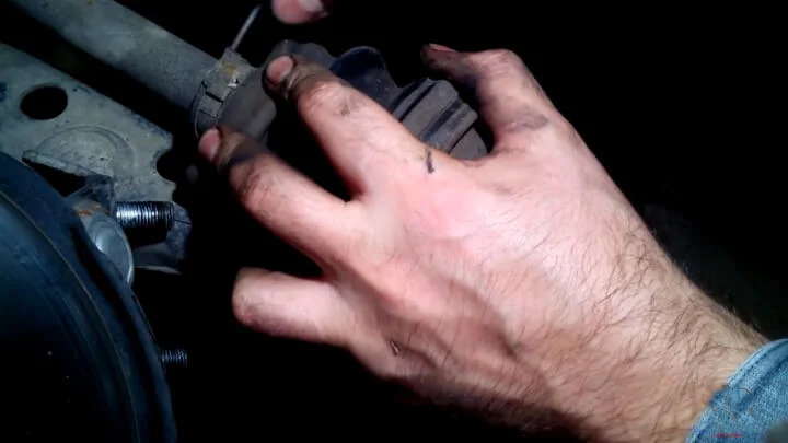 При помощи отвертки отжимаем малый хомут пыльника ШРУСа, кстати от одноразовый и повторному использованию не подлежит.