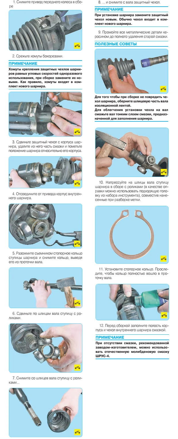 После чего собираем все обратно, заменив пыльники и хомуты. Вставляем трипод в гранату, одеваем пыльник, заводим внешнюю гранату в ступицу.