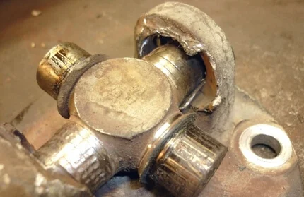 - Отрыв крестовинного узла от ведомой вилки или фланца с износом крестовины (самый распространенный случай)