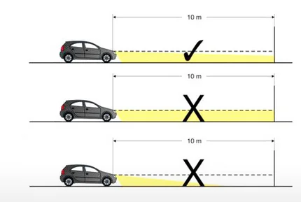 Für die Einstellung benötigen Sie eine gerade, vertikale Wand und eine davorliegende ebene Fläche von 7–10 Metern Länge. Ist der Boden uneben, wird der Leuchtwinkel falsch eingestellt.