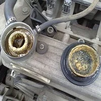 - Öffnen Sie den Deckel des Ausgleichsbehälters oder Kühlers: Ein Ölfilm ist sichtbar.