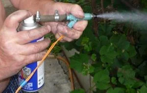 - Prepare an adapter: the syringe body or hose must fit tightly onto the injector on one side and the spray can tube on the other. Secure the connections with cable ties.
