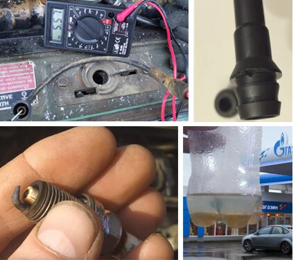 Des injecteurs encrassés provoquent des interruptions de l'alimentation en carburant dans la chambre de combustion, mais malheureusement, il est difficile de les vérifier rapidement sans banc d'essai. Le seul conseil dans cette situation est de faire le plein avec un carburant à indice d'octane élevé et de rouler quelque temps à haut régime (4 000 - 5 000 tr/min) pour tenter un décrassage.